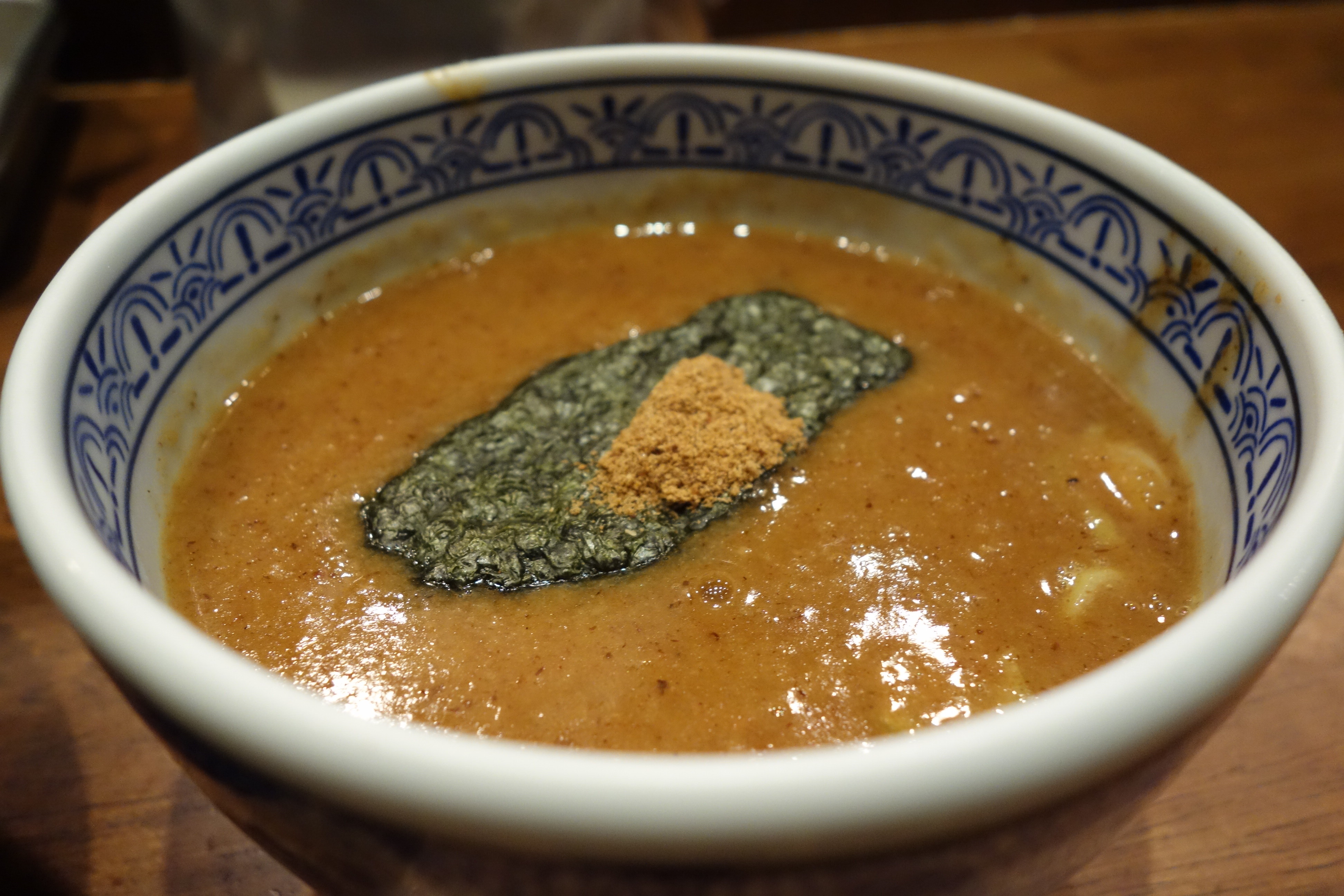 いつもかつお節のようなものがうまく混ざらず、一口目が必ず粉っぽくなってしまうのも、個人的にはこのお店の特徴だと思っています。最近はレモンが入っているお水もあまり見かけなくなりましたが、ここのスタンスは変わっていないようです。